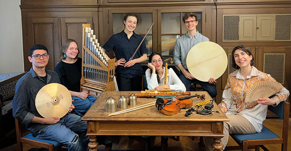 Ensemble Xàcara Camille Aubry, Blockflöten Darta Paldina, Gesang, Glocken Isabella Leitherer, Violine Owen McCready, Violone Nóra Szabó, Organetto, Cembalo Nelson Briceño Peraza, Schlagzeug |